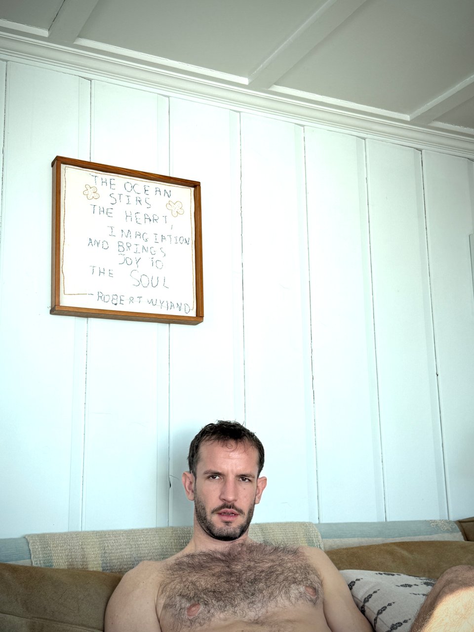 I had a quick meeting the morning he arrived and came back to find heād done a hole selfie shoot in the living room while I was away.